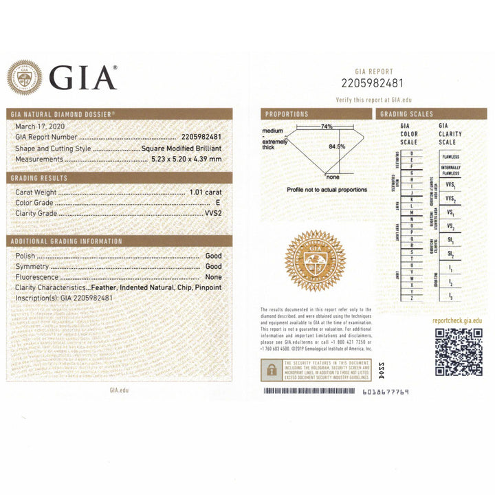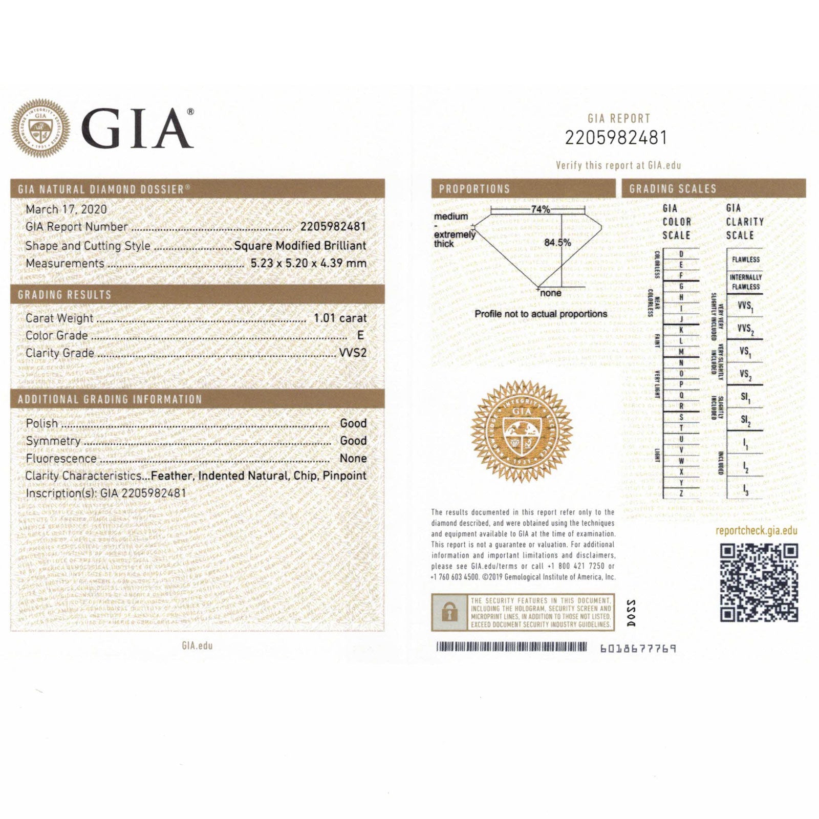 1.01 Carat Princess Cut Diamond Engagement Ring GIA Certified E/VVS2