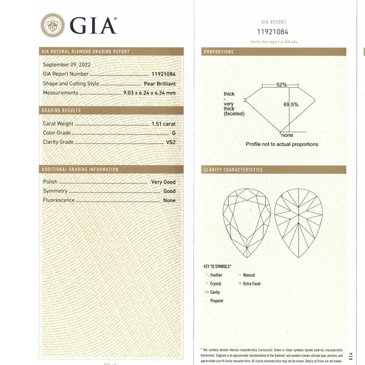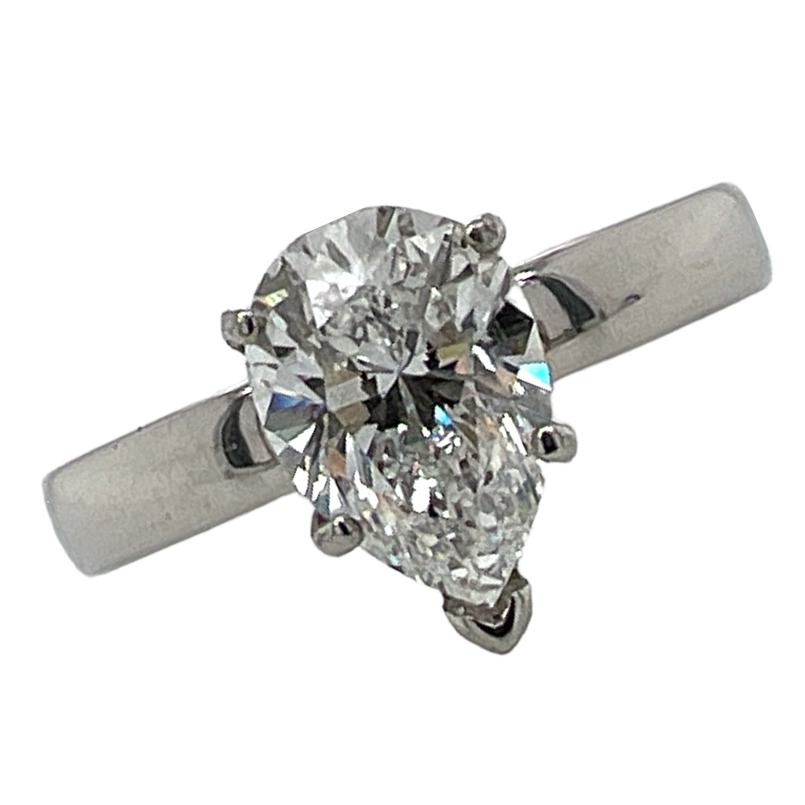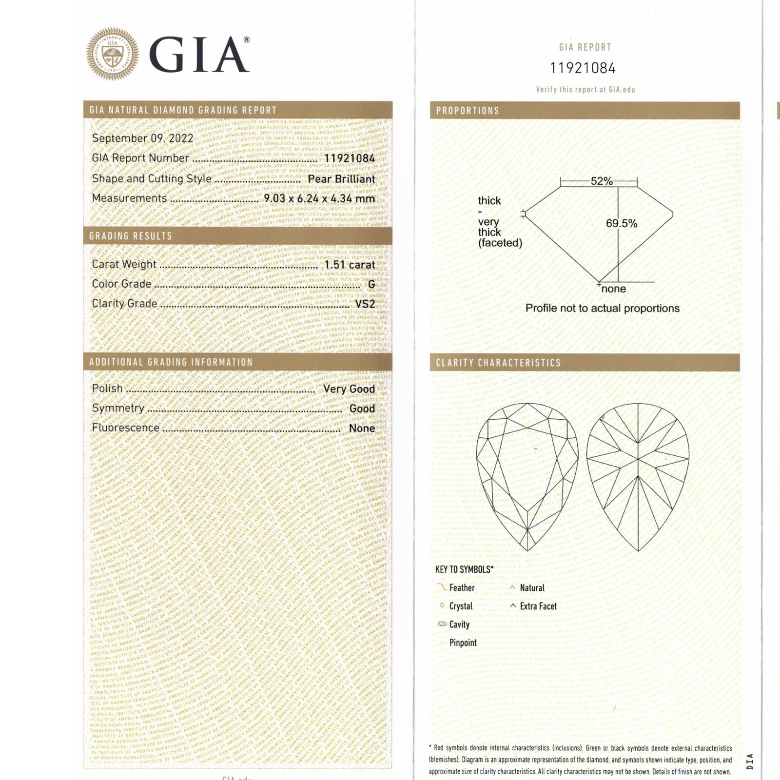 1.51 Carat Pear Shape Diamond Platinum Solitaire Engagement Ring GIA G/VS2