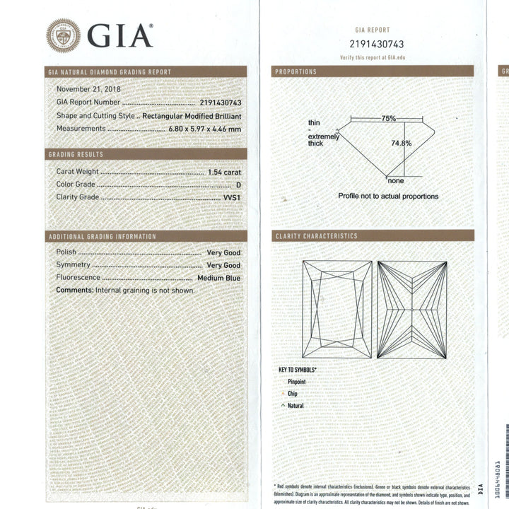 1.54 Carat Radiant Diamond Engagement Ring D/VVS1 GIA Certified