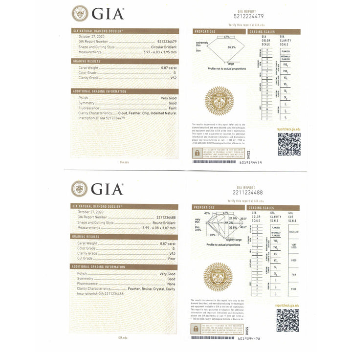 1.74 CTW Diamond Stud Earrings GIA G/VS2
