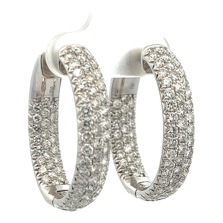 4.60 CTW Round Brilliant Diamond 18KWG Oval Hoop Earrings