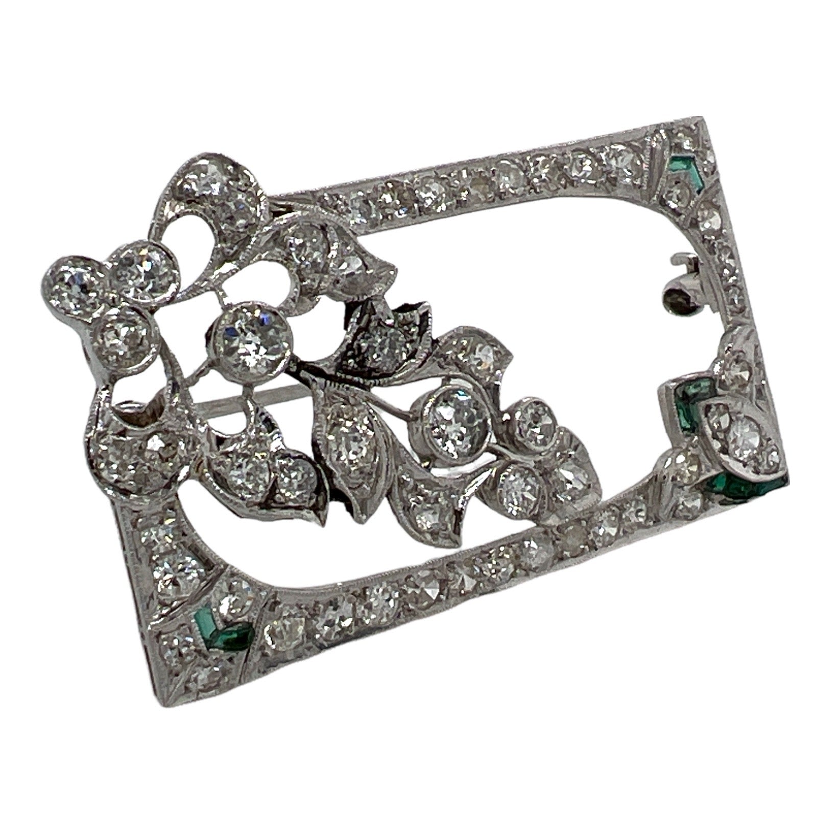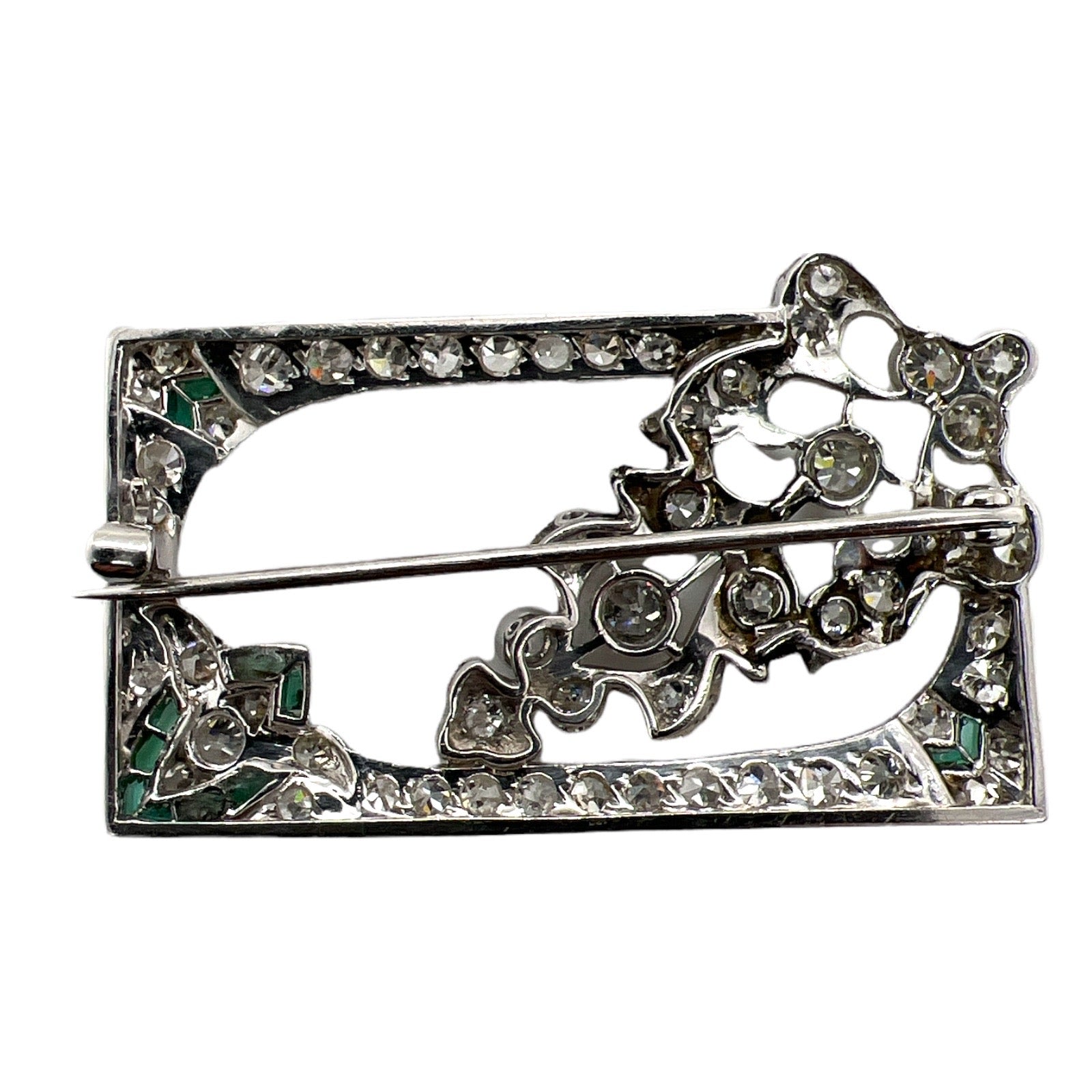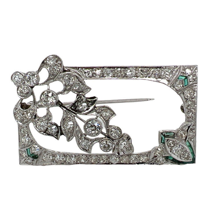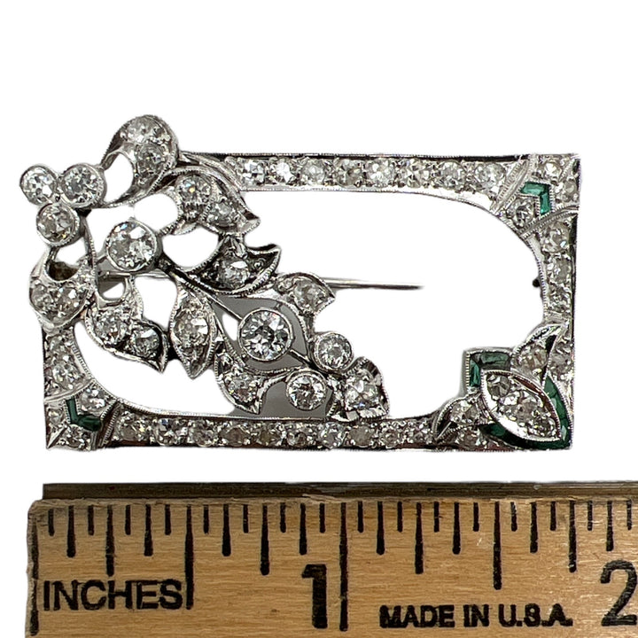 Art Deco Diamond Emerald Platinum Brooch Pin