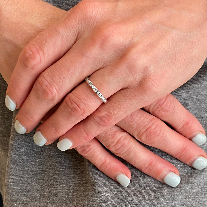 Diamond Wedding Stackable Band Ring 14 Karat White Gold