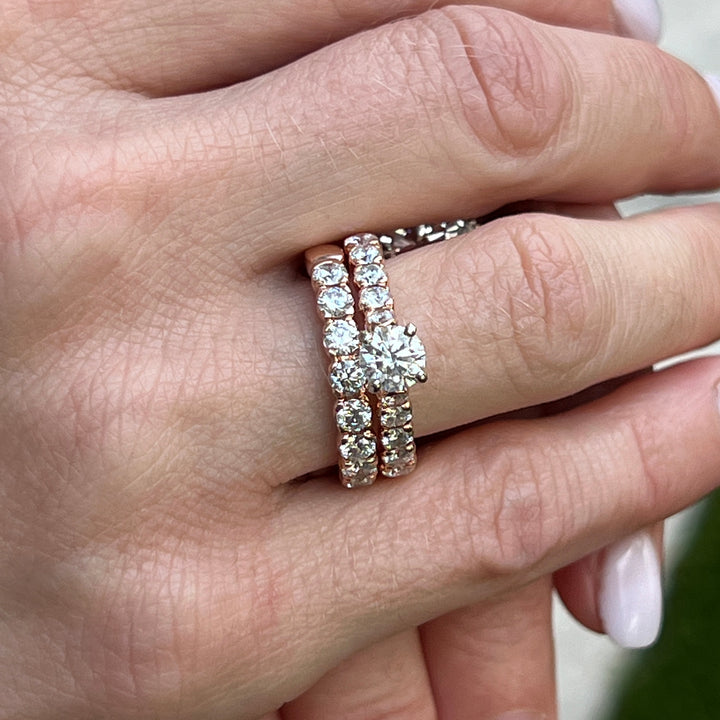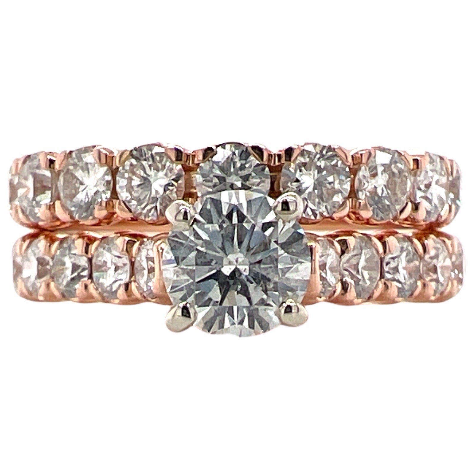 Round Brilliant Diamond Engagement Ring Bridal Set 14 Karat Rose Gold